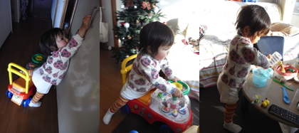 そして、そして、この車の後ろの黄色いバーを持って前へと歩くようにもなりました!