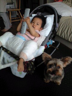 ギプスの分重いし抱きづらいのでちょっと大変だけど寝てるのが辛いんだろうなぁーと思うとつい抱っこしちゃってます(笑)