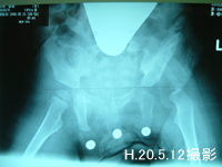 治療は脱臼をしている左足を2.5キロ、脱臼していない右足を2キロのおもりで牽引。そして12日に撮ったレントゲンの結果、下がったのは3ミリ、まだまだ足りないので夜だけ更に重りを500グラム増やし左足3キロ、右足2キロでしばらく頑張ってまたレントゲン撮影することになる。