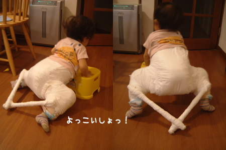 この写真はギプスの時に踏み台につかまって立とうとしている所。